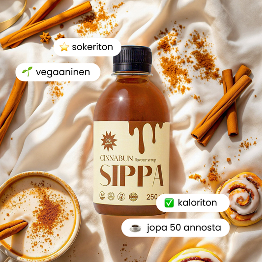 Kuvittele tuoreen korvapuustin mausteinen makeus ripauksella kanelia, kardemummaa ja muskottia... yhdessä suloisessa pikkupullossa. SIPPA Cinnabun muuttaa kahvit, leivonnaiset ja jopa pelkistetyn kaurapuuron täyteläiseksi herkuksi - ilman sokeria.