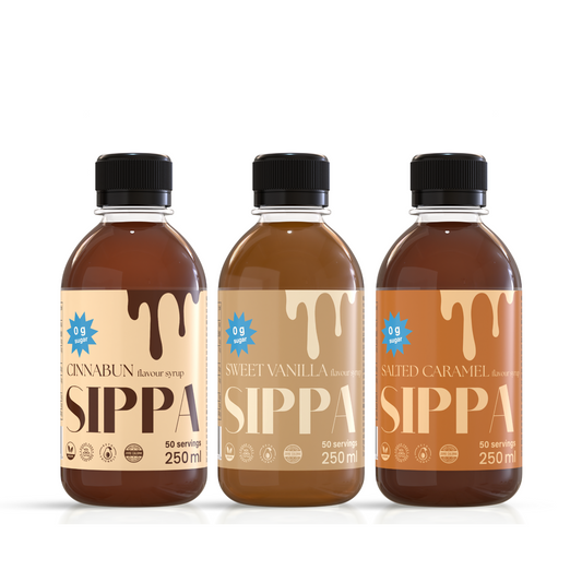 Tilaa kaikki kolme suosikkimakua yhdellä klikkauksella! SIPPA Multipakkaus pitää sisällään rakastetun Sweet Vanillan, Salted Caramelin ja Cinnabunin - täydellisen combon makua ja makeutta niin kylmiin ja kuumiin juomiin, välipaloihin ja leivontaan, sekä arkeen ja juhlaan.