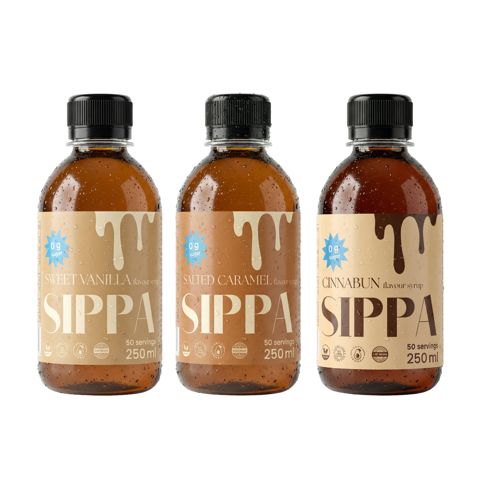 Älä missaa tilaisuutta napata meidän myydyintä tuotepakettiamme itsellesi tai lahjaksi! Salted Caramel, Sweet Vanilla ja Cinnabun – kaikki kolme rakastettua makua yhdessä täyteläisessä paketissa. Sokeriton, kaloriton, vegaani, keto-ystävällinen.