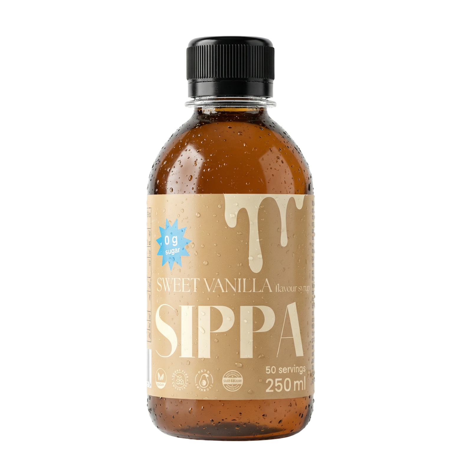 Vanhanajan vaniljajäätelö, nollalla kalorilla annosta kohden? Kyllä kiitos! SIPPA Sweet Vanilla on vegaaninen, ketoystävällinen, sokeriton ja kaloriton makusiirappi, jonka avulla voit loihtia täyteläisen makeita kahveja, coktaileja, ja leivonnaisia.